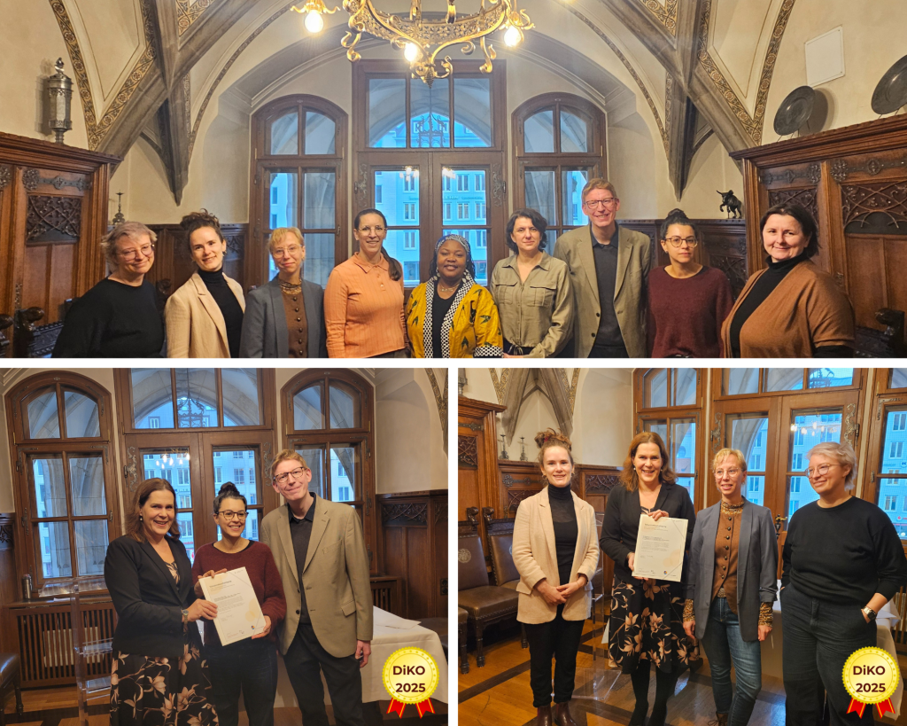 Am 04.12.2025 überreichte die 3. Bürgermeisterin der LH München Verena Dietl die DiKO-Teilnahmebescheinigung an das Marie-Luise-Schattenmann-Haus und die Münchner Volkshochschule.