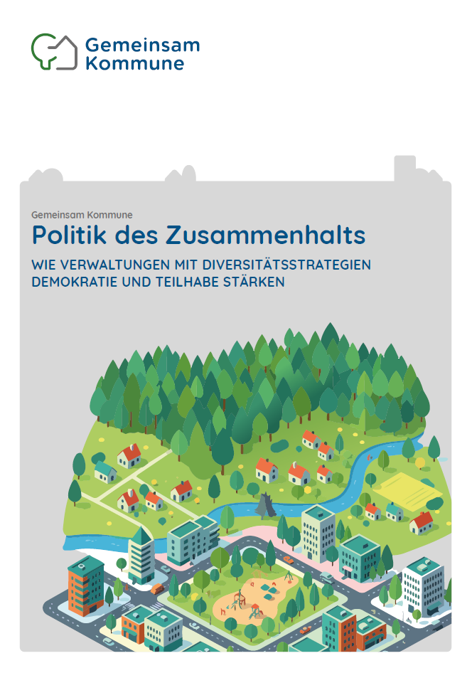 Diversität und Demokratie sind auf kommunaler Ebene unmittelbar miteinander verknüpft. Denn Verwaltungen prägen maßgeblich, wie Teilhabe, Repräsentation und Vertrauen im Alltag erlebt werden. Ihr Umgang mit gesellschaftlicher Vielfalt hat großen Einfluss darauf, ob demokratische Prinzipien vor Ort gestärkt und für alle erfahrbar sind. Die Broschüre „Politik des Zusammenhalts“ zeigt, wie Demokratieförderung und Vielfaltsstrategien in der Kommune zusammenhängen. Sie beleuchtet die Chancen für eine offene, chancengerechte und widerstandsfähige Stadtgesellschaft und stellt konkrete Maßnahmen für die Praxis vor – von diversitätssensibler Personalarbeit über den Zugang zu Angeboten bis hin zur Öffentlichkeitsarbeit.